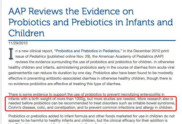 对于其他的功效,美国儿科学会( AAP)2010 年曾发布的一篇关于益生菌的文章,表示还有待继续研究 (More research is needed)。