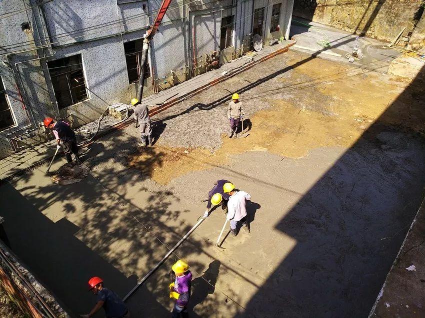 3月22日,在白云山景区旁,工人正在浇筑一处停车场的地面。
