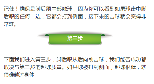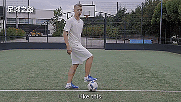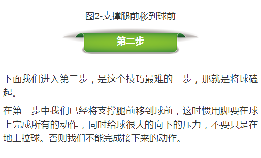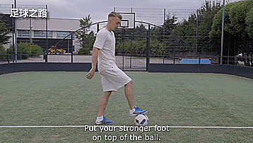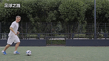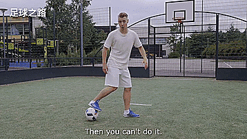 如果我们将球控制在身后,我们就可以很轻松的用脚后跟将球踢起来,然后落到身前。