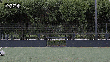 现在我们要将支撑腿移动到球前,前移的同时要小跳,并保持惯用脚始终踩在球上不能放松。