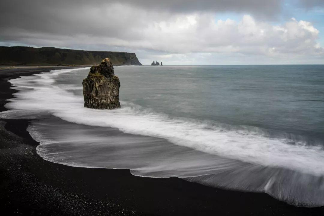冰岛黑沙滩的“沙”其实是颗粒状的火山熔岩。这些熔岩颗粒没有杂质,也没有淤泥尘土,捧起一把,满手乌黑,轻轻一抖,黑沙四散,手上却纤毫不染。