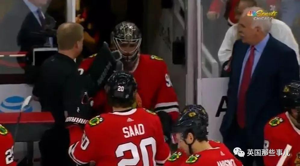 终于到了这周四,在这场比赛开始的前几个小时,黑鹰队的守门员Anton Forsberg在晨训中受了伤,