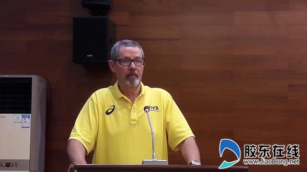 国际排联技术代表哈里森?布莱尔?大卫在发布会上致辞