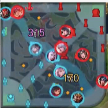 之后又是项羽+娜可露露一路压兵线,大乔花木兰另一边准备开暴君,百里守约守中路塔。项羽那边压好兵线之后,大乔开大,集合拿暴君。拿完暴君项羽娜可露露组合再压另一路兵线。认准 EDG.M 阵容必须野辅再带一个边路抱团才能杀人的节奏,BA 利用这种212 的阵型始终保持对双边兵线的压力。让EDG.M 的打架阵容非常难受,东皇太一失去了线上强开的节奏。