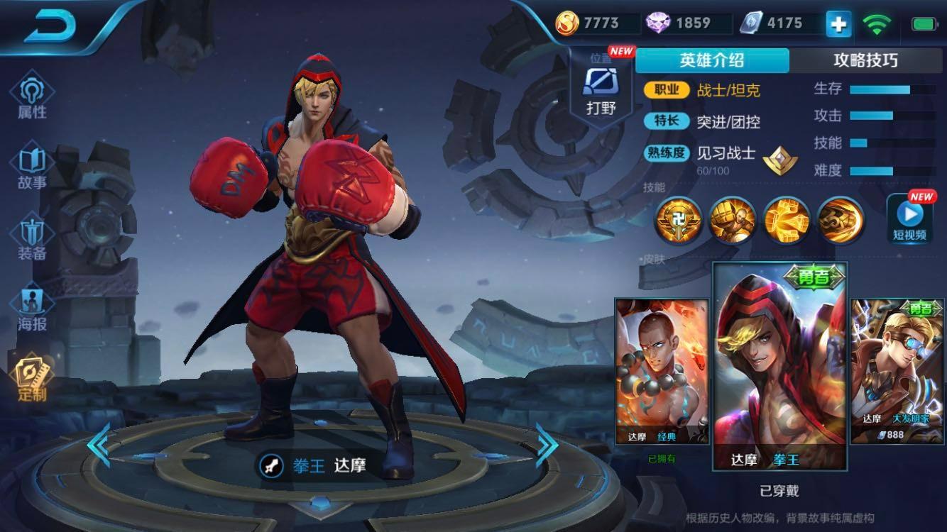 技能详解:达摩的被动技能*钟金**罩使他的抗性非常强大,每次释放技能可以增加护甲,最多叠加三次。至多可增加240点护甲。使得达摩在团战中能够抗住敌方伤害深入敌方后排完成击杀并功成身退。被动不仅如此,在技能命中敌方后带吸血的满攻速平a在后期接近满cd的情况下基本都保证能够极限不断的衔接平a。回血的速度更是非常快,持续作战能力非常强大。