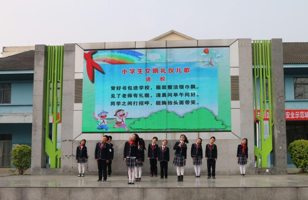 在欢快的乐曲中大家朗诵了《小学生文明礼仪儿歌》,让文明之花在心中开放。