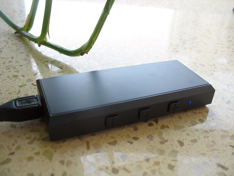 在开始测试之前,先按照说明书要求,给雅特斯R1蓝牙耳放充电。插入充电线后,可以看到机身侧面的指示灯亮起蓝灯,待充电完毕后,指示灯会熄灭。雅特斯R1蓝牙耳放既可以使用手机充电器充电,也可以使用PC上的USB口充电。
