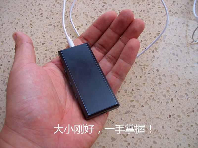 如上图,雅特斯R1蓝牙耳放整体机身尺寸为80mm(长) X 35mm(宽) X 12mm(厚),大小适中,怎么形容呢,看下图!