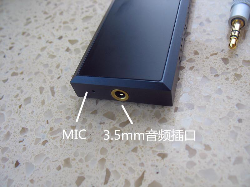 在机身顶端是内置的全指向通话MIC,自带CVC智能降噪技术,无需使用耳机线上的麦克风也可以清晰通话。在MIC旁边是3.5mm音频输出插口,用于连接通用的3.5mm耳机。