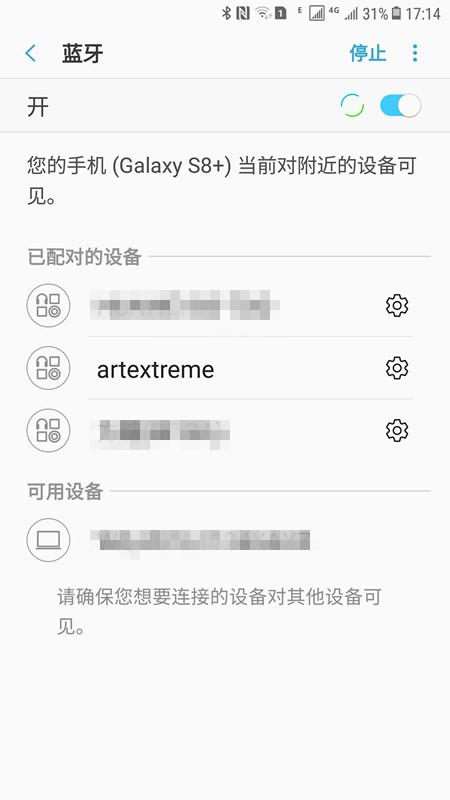 此时,打开需要连接蓝牙的设备,如笔者所用的安卓手机,就会出现“artextreme”的可用设备,点击连接即可。