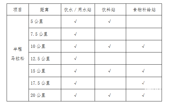 1、比赛起终点及赛道沿途(自5公里起每2.5公里)均设固定医疗站;