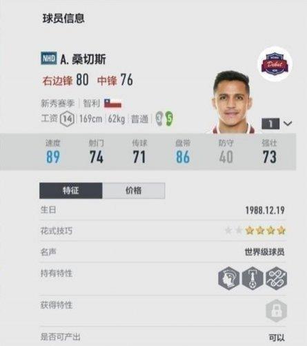 NHD 桑切斯:边路手感取决于速度盘带和灵活,这张卡完美拥有这些优点,手感柔滑,优点能钻边路总能打出机会,手感不亚于一些上百万的球员,体能 85 的属性在边路也能算优秀级别的。价格 14W 左右。