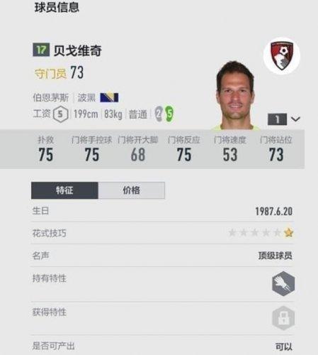 17 贝戈维奇:FIFA18 平民神卡,在游戏里鸭子能扑的我也能扑,到 OL4 尴尬的缩水了 3 公分,但这都不是问题,因为他工资只有 5,如果你对其他位置要有更好的补强,这张卡绝对是首选,虽然缩水了但是依旧有 199 公分的身高,在加上单卡扑救手控球门将反应都是 75,强化到 5 绝对很安心。单卡价格 2W4 左右,实战性不错扑救很稳,但是高空球更让人有种说不出的放心。