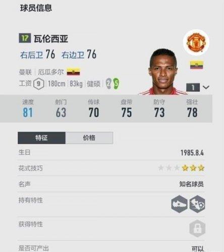 17 瓦伦西亚:边后卫的选择基本以速度 模型 防守和强壮属性,在排位赛工资为 9 中这张卡的实用性非常高,模型很大而且速度也不慢,其他关键属性虽然中规中矩但是你要能找到这样的工资和这样的属性和模型非常难,实用性极强的边后卫现在求购价格 14W 左右,中午买的 5W。当然打排位赛中 17 卡里面的边后卫中手感最好的是沃克。基本都是以沃克 + 瓦伦 或者沃克 + 阿尔巴为主,沃克现在求购价格为 24W 左右,后面就不叙述沃克了。