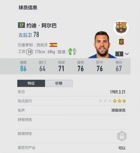 17 约迪阿尔巴:工资帽不够需要节省,边路找阿尔巴,这张卡最大的特点就是速度快,在使用的过程中,虽然双速都是 86 但是在一次对面 UL 小罗单刀的时候,这张卡竟然奇迹般的回追过了 UL 的小罗,简直让我不敢相信自己的眼睛,而且在平常的使用中基本没有任何吐槽的尿点除了争顶乏力,是非常实用的球员。中午单价 11W 左右,现在竟然到了 16W 的求购价格,如果打排位类似这种好用的 17 赛季的边后卫只会涨价,要么就现在赶紧买,要么就等 TX 大量发包降价后在买。