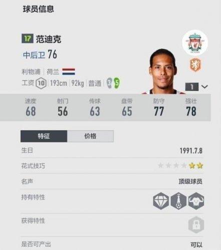 17 范迪克 : 这张卡价格求购价格为 18W 左右,看了下模型还可以,属性也不是那么高,发现有点抄卡的意味,但是自己使用了下发现,这张卡的起追的那一下很快,而且正面不虚高能力的强壮型中锋。模型腿很长卡球的范围很宽,高空争顶很让人放心,是个非常实用的后卫,用着非常舒服,而且工资为 10.