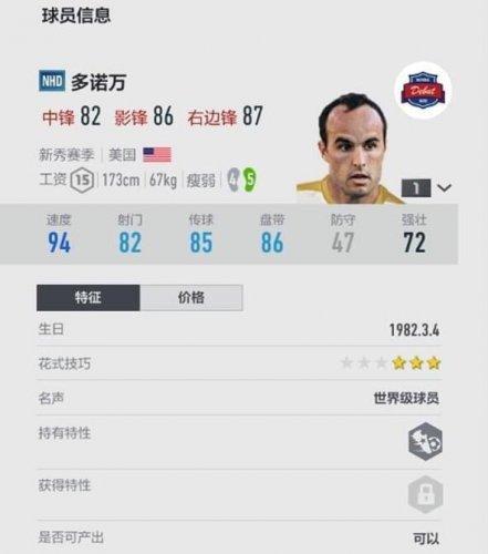 NHD 多诺万:全能型代表前锋,花式略坑。反击流和传中流的福音,出卡量高,还会在降,手感轻快,突然的起步加速很快。传中能力不错可打边路传中流,54 脚基本无盲区,除了花式略坑,有能力上五绝对是张好卡,花式四星内切美滋滋。他与一些顶级边路卡只差在了一格的花式,单卡估计以后会稳定在 10W 左右。
