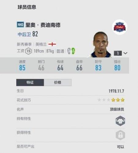 NHD 费电男:这是一张典型的回追型后卫,速度奇快,虽然速度能力值跟 NHD 马尔蒂尼有些差距,但是实用起来只快不慢,现在所有卡种类速度第一的回追型第一中后卫,排位首选中后卫之一。现在求购价 50W 左右,估计还会在涨。