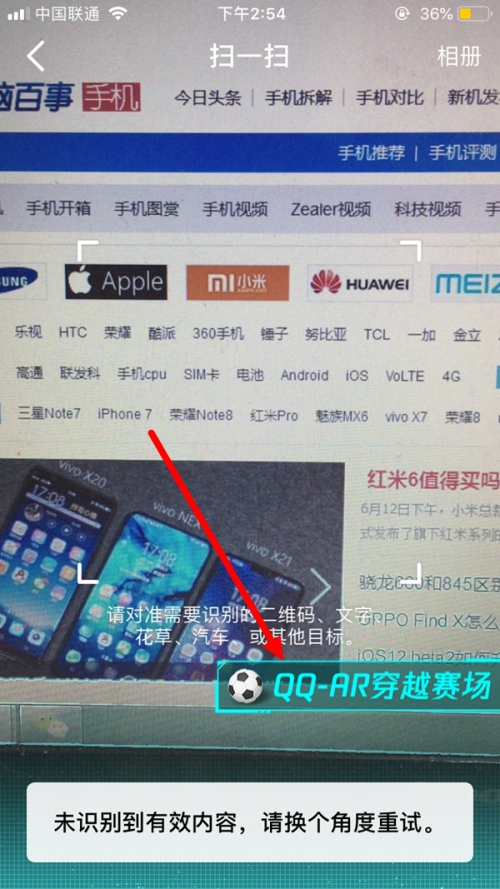 进入到手机QQ扫一扫界面之后,就会在当前页面发现“QQ-AR穿越赛场”字样,点击进入,如下图所示。