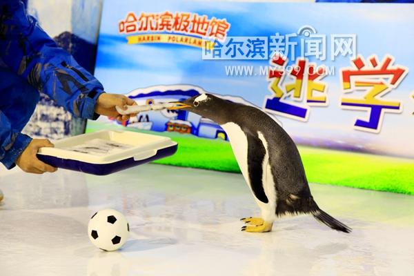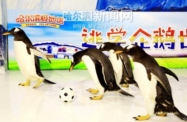 “逃学企鹅”球场玩花样 “踢球”“玩球”分不清