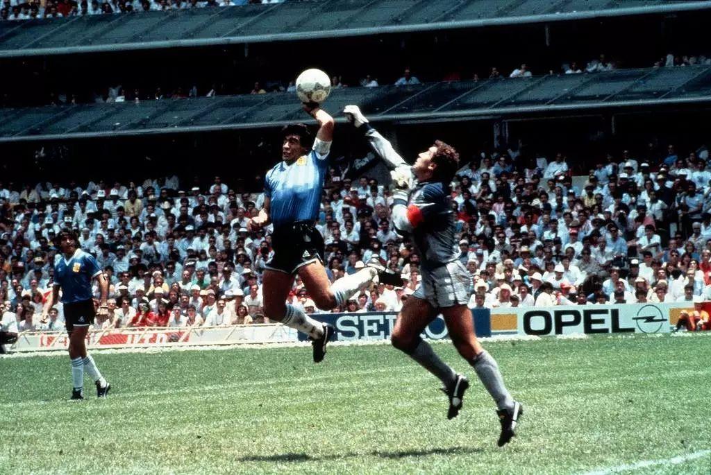 天使与魔鬼的差别,往往只在一瞬间。墨西哥世界杯,阿根廷和英格兰在四分之一决赛中狭路相逢。而就在四年前,两国之间爆发了马岛之战。1986年6月22日,墨西哥城阿兹特克球场,见证了马拉多纳的天神下凡。比赛第51分钟,英格兰后卫鬼使神差将巴尔达诺的停球解围到自家禁区,马拉多纳机敏前插,面对出击的希尔顿,用左手将球蹭进球门,完成“上帝之手”的进球。三分钟后,比赛第54分钟,马拉多纳再度惊艳世人。中场拿球的他,蜻蜓点水般先后过掉比尔兹利、雷德、芬维克、布彻和希尔顿,完成连过五人的“世纪进球”。短短三分钟时间,天使与魔鬼,在马拉多纳的身上交融。金杯和最佳球员双料殊荣加身,马拉多纳终在阿兹特克球场封王。