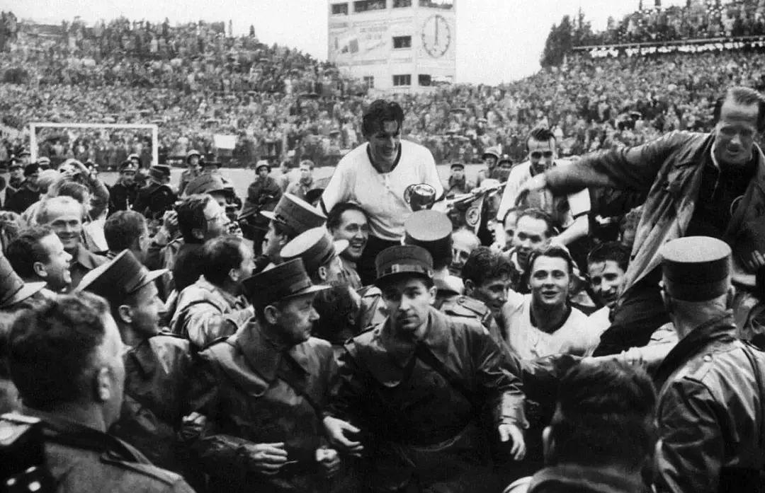 奇迹,在相信它的人眼里才是奇迹。1954年7月4日,伯尔尼范可多夫球场,联邦德国在瑞士世界杯决赛的舞台上完成了不可能完成的任务。匈牙利是当时足坛的绝对霸主,是拥有普斯卡什、柯奇士、博西克、格罗希奇等一众球星的梦之队,其中普斯卡什是当届世界杯的最佳球员,攻入11球的柯奇士是当届世界杯的最佳射手。自从1950年以来,直到1954年瑞士世界杯决赛之前,这支无敌之师在四年内未尝败绩。并且两队曾在小组赛时有过直接对话,匈牙利8-3轻取联邦德国。决赛开场仅八分钟,匈牙利便两球领先。之后的比赛风云突变,联邦德国连扳两城,并凭借着拉恩第84分钟的进球逆转绝杀不可一世的匈牙利。这场石破惊天的绝地逆袭和金灿灿的奖杯,对于当时处于战后重建中的德意志民族有着不可估量的精神支撑作用。2003年,这段不朽的历史还被改编为电影《伯尔尼奇迹》,以供后人铭记。
