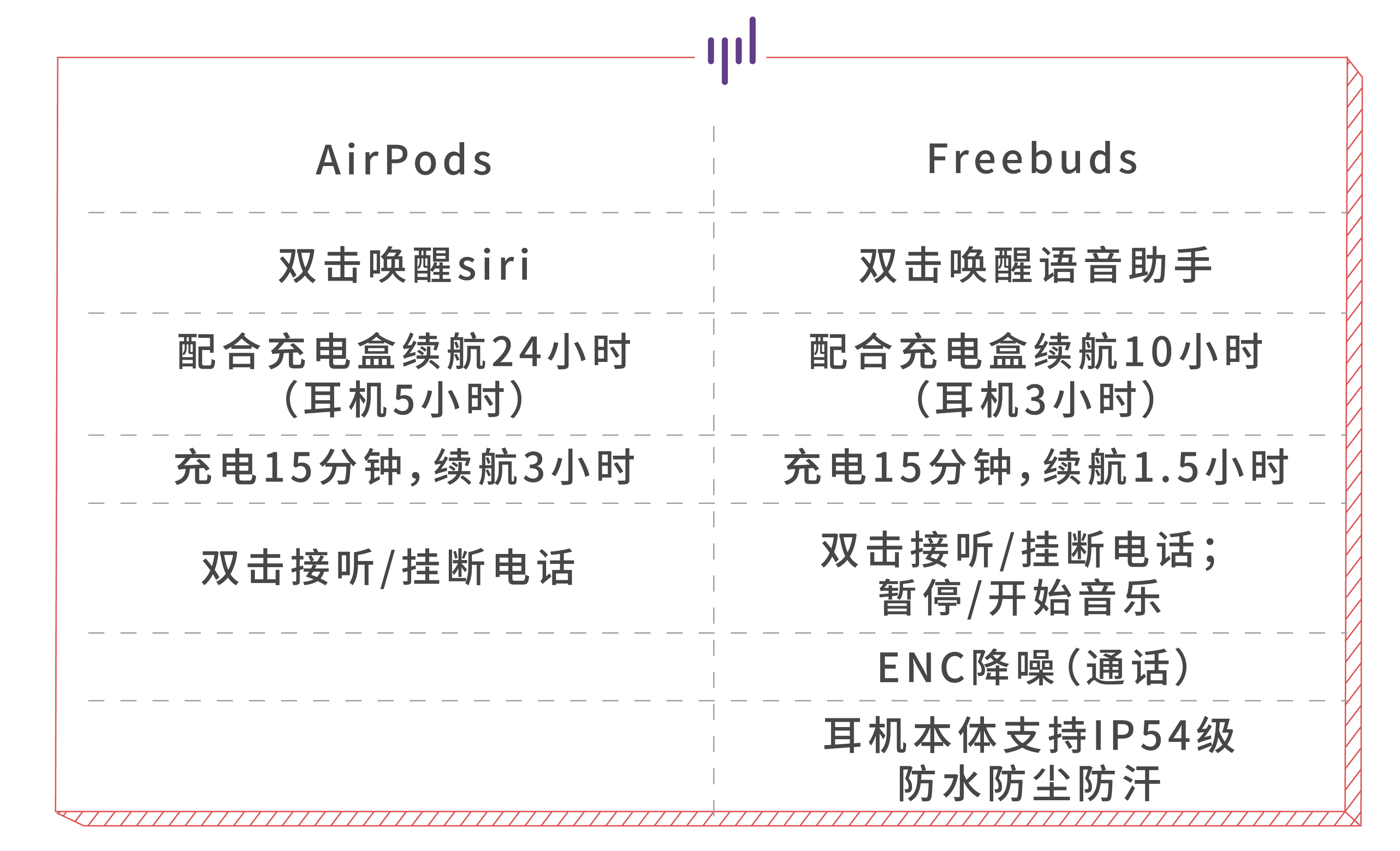 Freebuds 发声相对浑厚,有比较宽的声场,听节奏比较强的欧美音乐比较带感,听古典交响乐的临场感也比较好;AirPods 发声比较清爽,听什么都是白开水。音质这东西就看你的个人喜好咯。