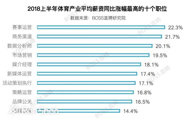 同时,赛事运营、商务渠道、数据分析师的薪酬同比增速排名前三,增幅均超过20%;