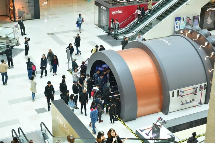 戴森在上海恒隆做了个吸尘器博物馆,将 Dyson V10 的每个部件都拆解、放大。观众可以穿行在部件造型的展区之间,亲身体验 Dyson 吸尘器的原理和内部构造。