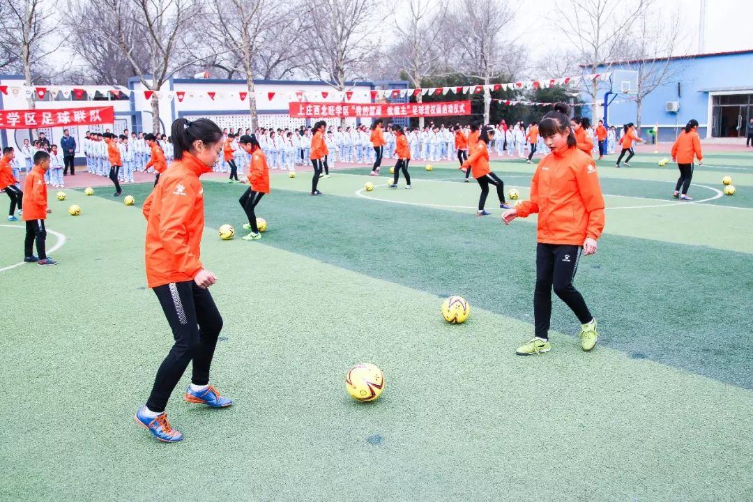 3月21日,在海淀区永丰中心小学,随着学区内11所学校接过足球训练营旗帜,上庄西北旺学区足球进校园活动正式启动。