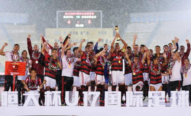 另外,第二届恒大杯国际冠军赛国内赛区U17年龄组的赛事也于8月28日晚在广州越秀山体育场圆满落幕。经过10天的激烈角逐,比利亚雷亚尔与弗拉门戈会师决赛,在这场大雨中进行的强强对话中,双方在90分钟里打成1-1,比赛被拖入点球大战。最终,弗拉门戈笑到了最后,5轮点球全部罚进,以6-5的总比分成功捧杯。