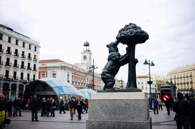 太阳门广场是马德里最中心的广场,广场上最有名的莫过于那只爬树小熊了,这是马德里的城徽,也是每个游客来马德里必去的到此一游拍照纪念地。