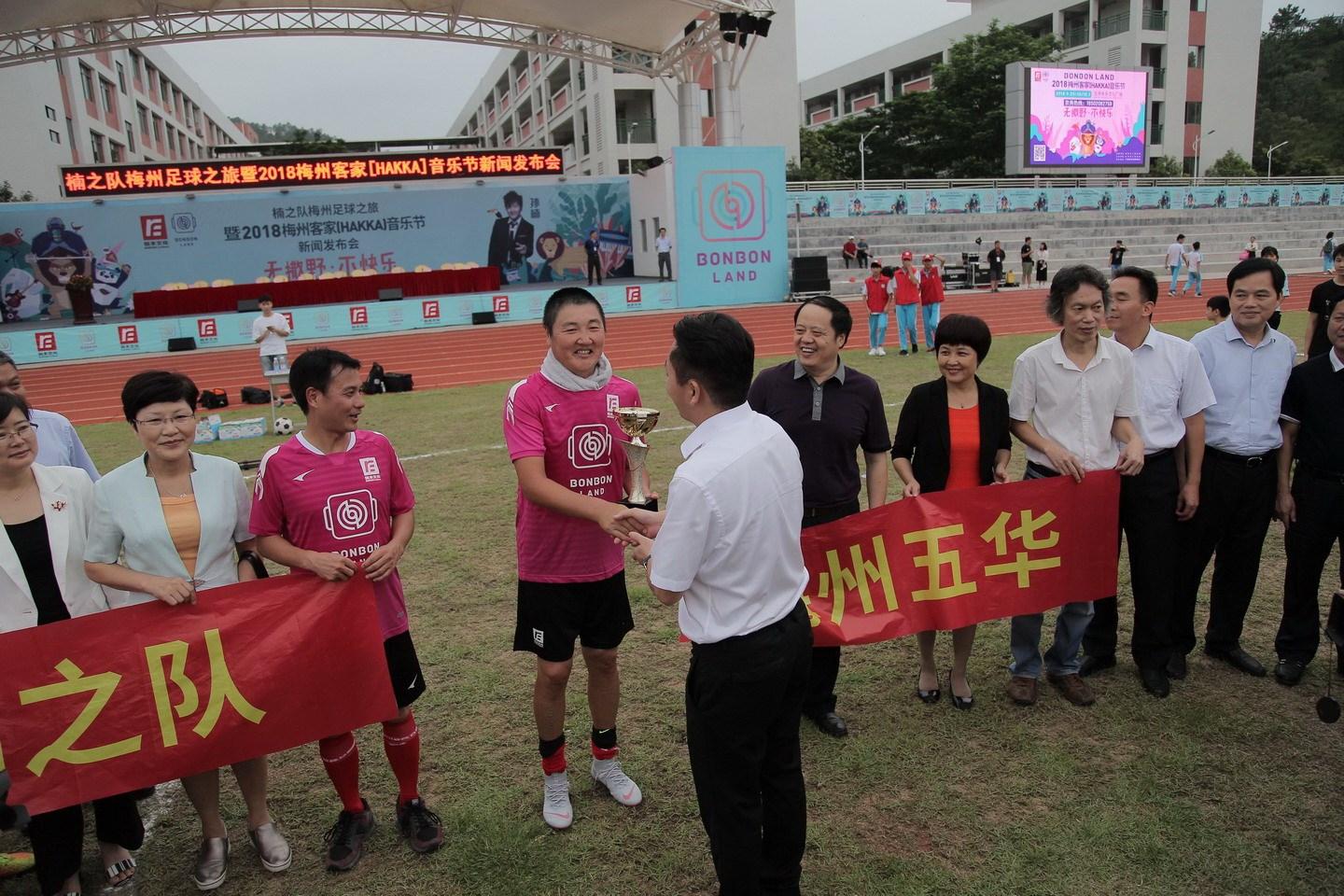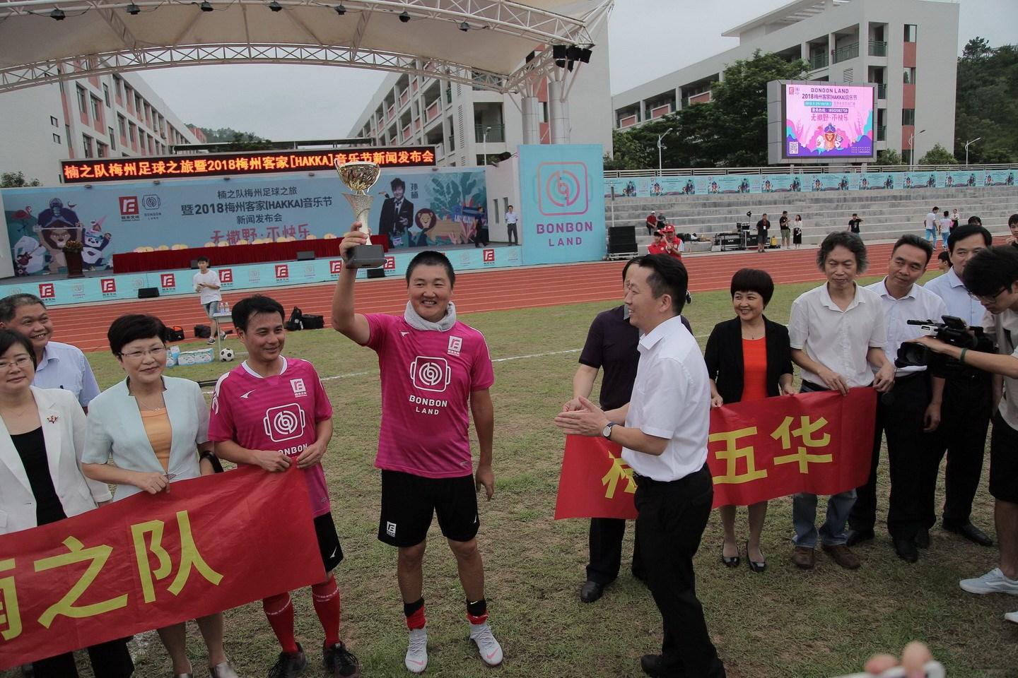 作为梅州客家(HAKKA)音乐节系列活动之一——楠之队梅州足球之旅也于当天在梅州五华县高级中学足球场踢响,国内着名音乐人孙楠率队作客五华,与当地足球队同场竞技,感受中国足球之乡独特的客家足球文化魅力。