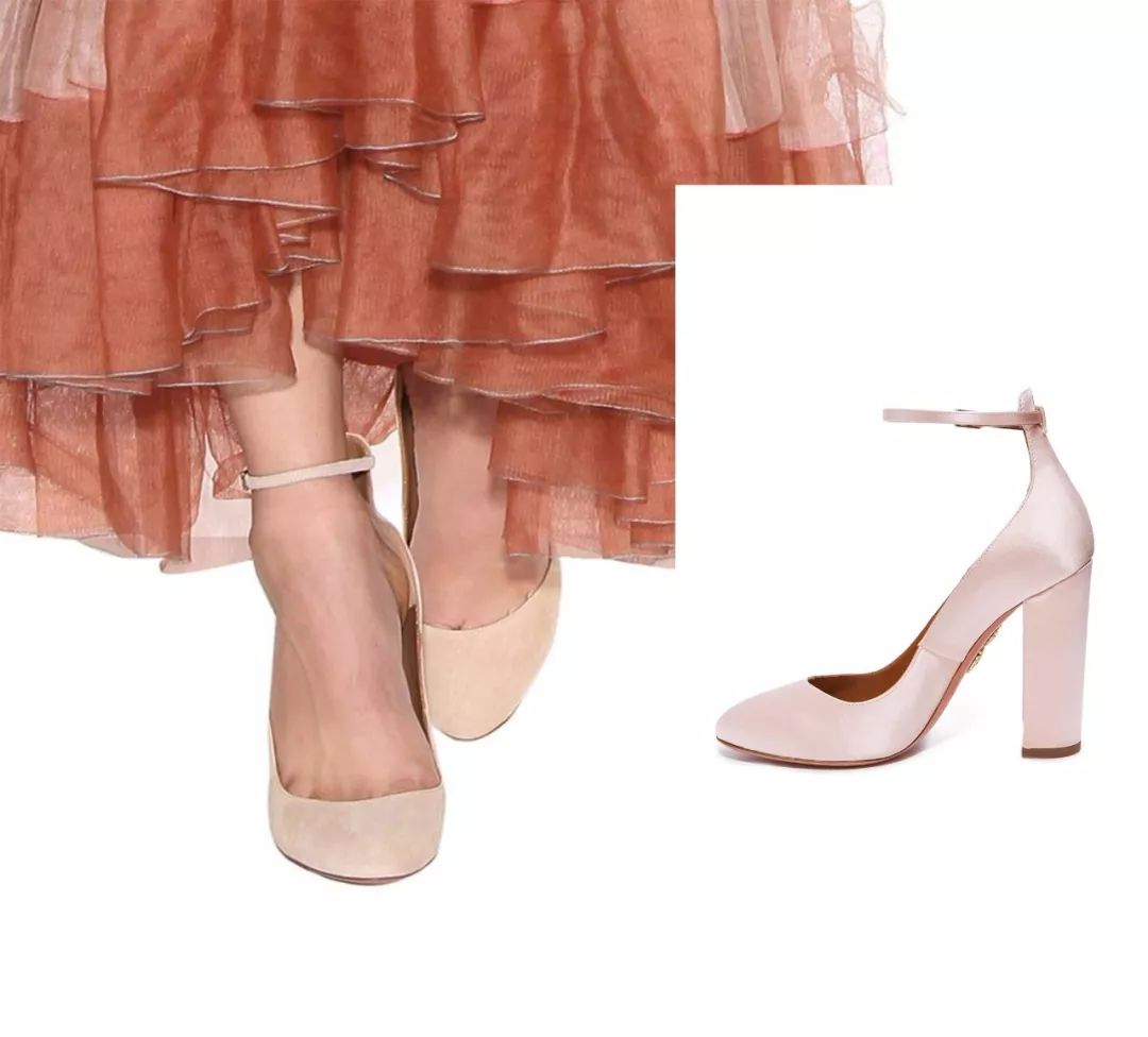 Aquazzura 的细带鞋也是不少女生的心头好!这双超难买的粉色给人芭蕾舞者般的优雅高贵感。高度设计非常调节身材比例,显腿细人高。