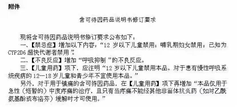 难怪它的止咳效果这么好,原来是因为使用了中枢镇咳药成分可待因,而这个成分在中国是明文禁止用于12岁以下儿童的,因为有呼吸抑制的潜在不良反应风险,如下图官方文件所示。