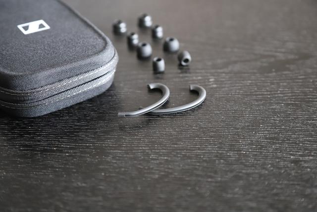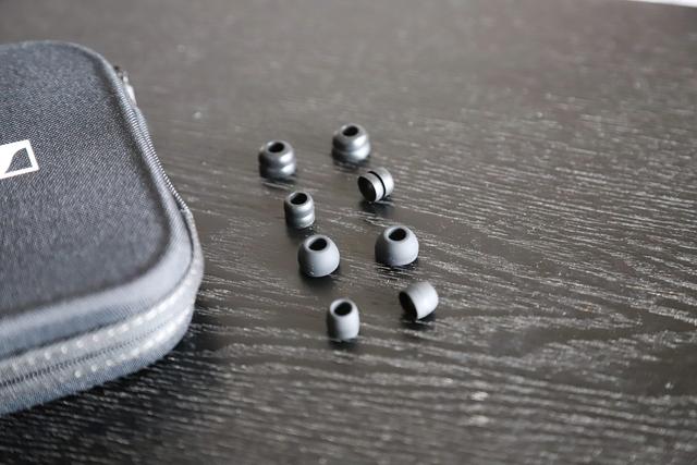 包装盒中,除含有耳机本体以外,还有3副COMPLY 泡沫耳塞(国内称呼为C套)(S/modules/L),3副标准硅胶耳塞(S/modules/L),一根调音棒,一对上手柔软的耳挂,还有3副Lamella硅胶耳塞(S/modules/L),还有一个耳机存储盒。