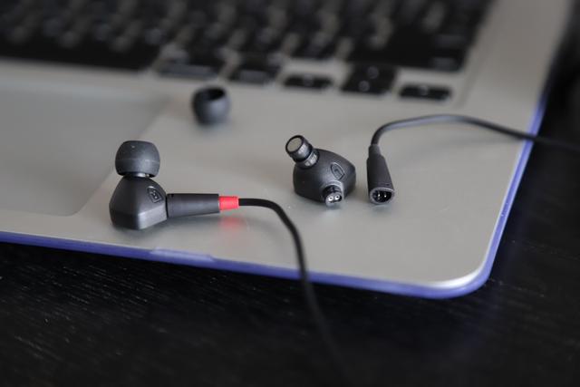 耳机在佩戴使用的时候,因为森海的美学设计——耳机右单元对应线材接头部分是正红色标识,这样就大大方便了用户佩戴耳机的感受。一眼就能清晰辨别耳机单元的左右两侧从而快速完成佩戴,十分贴心。