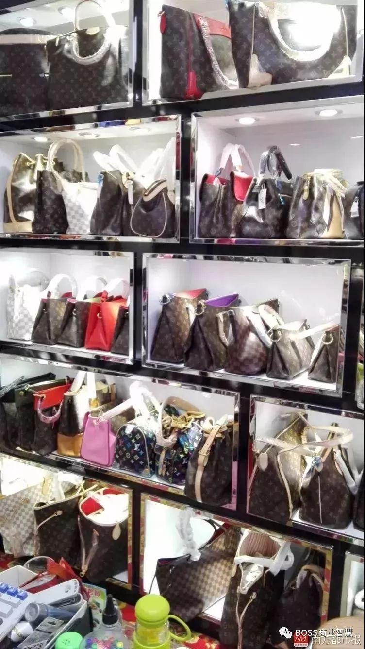 正品售价几万元的大牌包包,这里的高仿A货只需要几百元,店主拍胸口打包票:“连行家都分不出真假”。