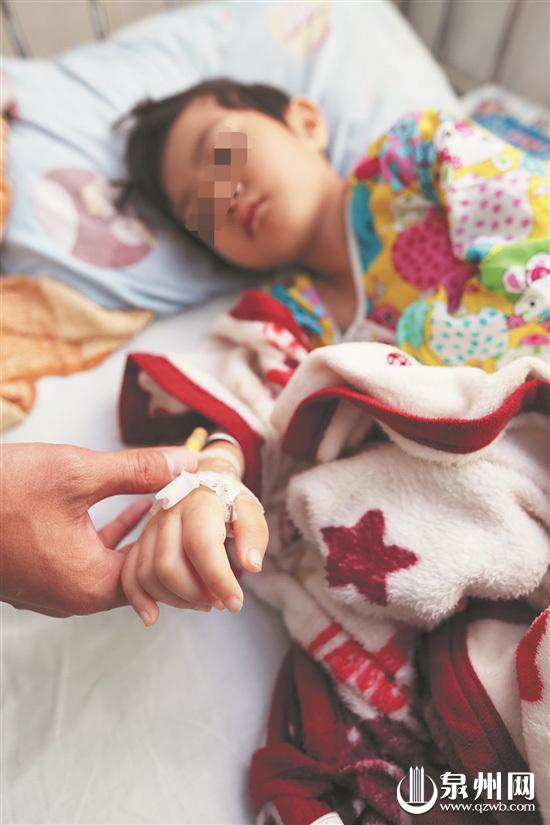 “爸爸,我要爸爸!”在福建医科大学附属泉州第一医院儿科病房,爸爸曾炳忠一离开,小雯就哭闹着要找他,看到爸爸和妈妈在身边,小雯才会觉得身体没那么难受。