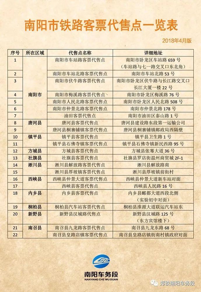 据了解,南阳车务段管内目前有23家火车票代售点,其中,平顶山地区1家,南阳地区22家,分布于11个县市区。市民前往购票时要注意。