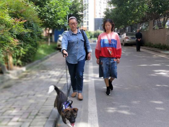 云姐(左)正在遛狗