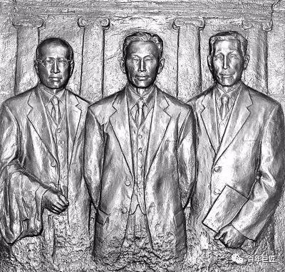 建筑学家童寯、杨廷宝、刘敦桢塑像(从左到右)