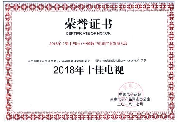 7月3日,由中国电子商会、中国电子技术标准化研究院联合主办的“第十四届中国数字电视产业发展大会”在北京举行,并发布《2018年1-6月中国彩电消费及下半年市场趋势预测报告》(以下简称报告)。会上,知名家电品牌夏普推出的煌彩液晶电视LCD-70SU675A,凭借其无可比拟的画质清晰度以及强大的彩电显示技术能力,赢得了与会嘉宾、行业专家的关注与认可,荣获“2018年十佳电视”称号,并在“看球电视”专项测评中表现优异。