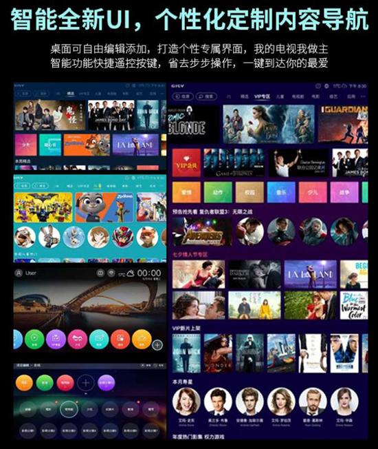 在智能应用方面,凭借革命性的语音交互功能,进一步提升用户的视听体验。全新的UI界面,个性化的专属定制内容导航和便捷快速的遥控按键能让你省去步步操作,一键直达你的最爱。内置的银河奇异果VOD服务涵盖了四大片库36个频道,不仅全线覆盖华语院线电影,更是覆盖了多数好莱坞片源,上万部影视剧让你观看随心所欲。此外,此款电视还支持手机无线传屏,一键投屏功能,可轻松享用多家在线视频平台内容。