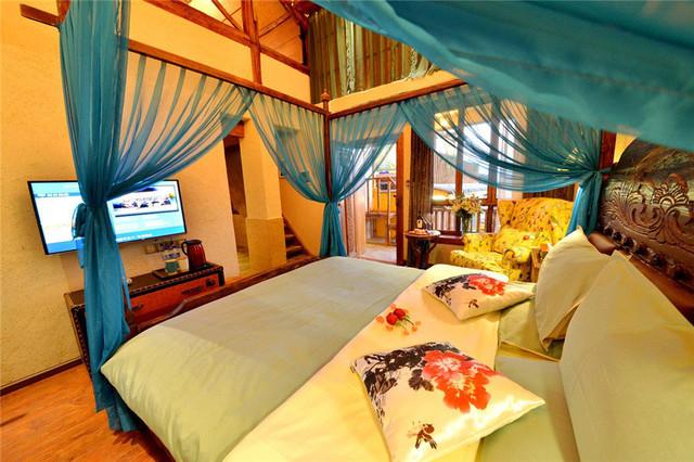 每间客房都在客老板的精心装潢之下,充满了丽江当地特点。古朴的院门、精致的雕花木质小楼、曲径通幽的四合院,纳西文化在这里体现得淋漓尽致。