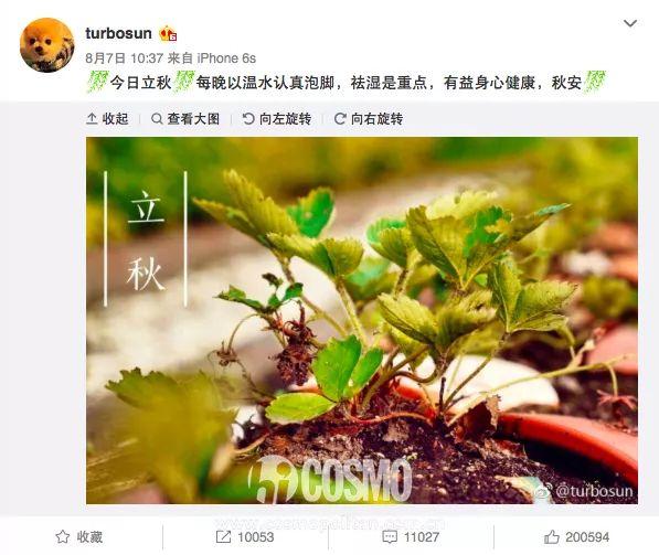 但说起泡脚养生,不得不提到的另一位明星必然是孙俪了。打开娘娘的微博,搜索关键词“泡脚”,就会看到一连串的在每个节气时她提醒大家泡脚的温馨提示——