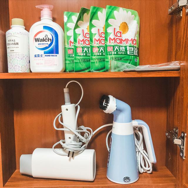另外,打开洗漱台的镜子,后面是一个壁柜,房东贴心的准备了洗衣液、吹风机、迷你熨斗,家的感觉更加强烈了。