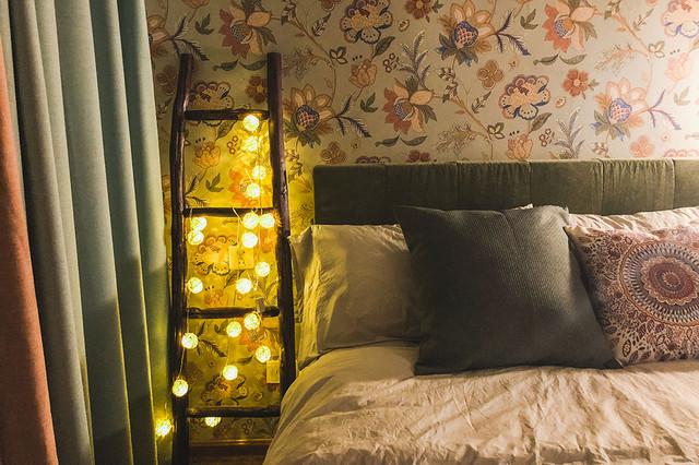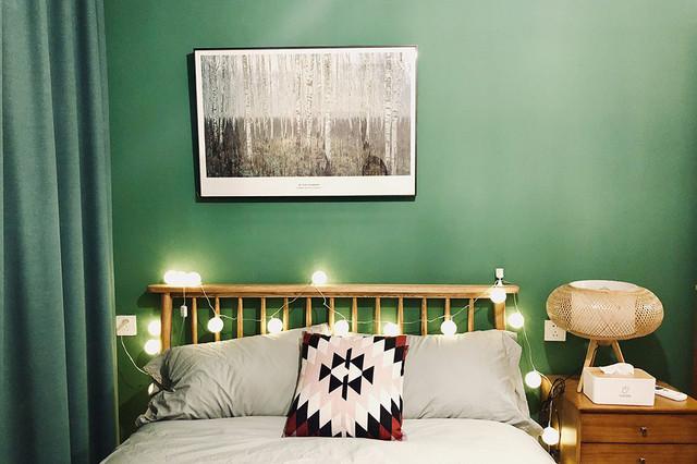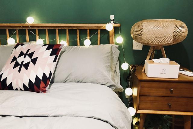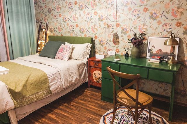 两间卧室贴着不同的墙纸,一间是清新的小碎花,另一间是复古的深绿色,却又有着相同的怀旧气质。房东还贴心的在床头准备了镂空小灯串,满足了女孩子们的少女小心思,晚上将灯点亮,空气里都是浪漫。