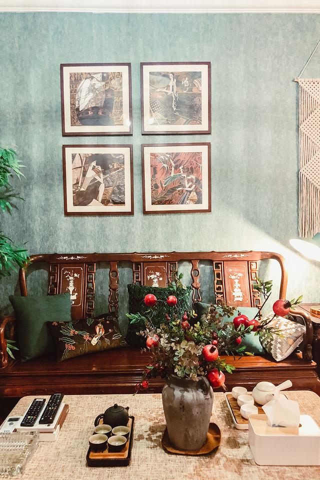 推开房门,像是打开了一个时光宝盒,日子一下子回到了三十年前。纯实木的桌椅,配上一些布缦,慵懒而温馨。房东是一位艺术品鉴定师,房间里自然是有不少的艺术品摆设,从餐具的搭配到画品的选择,每一样都可以看出是房东精心挑选的。