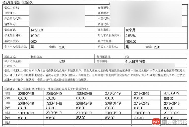 合同显示,张女士只拿到了9200元*款贷**本金。